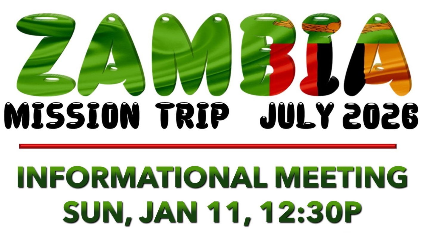 Zambia Missions Trip Informational Meeting - Sun, Jan 11, 12:30p